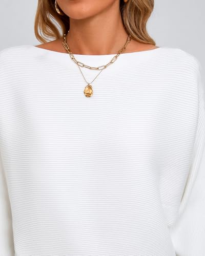 More information about Ficerd 2 Pack Women's Fall Sweaters 2025 Boat Neck Dolman Bat Wing Long Sleeve Knitted Sweaters Casual Pullovers Tops