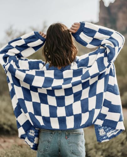 • Material: 100% Polyester. Checkered knit cardigan is made from soft chunky knitted fabric. Oversized cardigan sweater makes you feel cozy and warm in cold days.