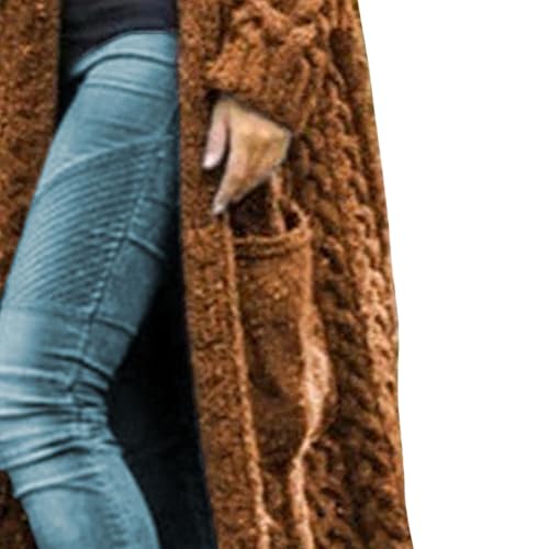 HOT ! Women Hooded Long Cardigan Coat Casual Puls Size Cable Knit Open Front Oversized Cardigan Sweater with Pokects