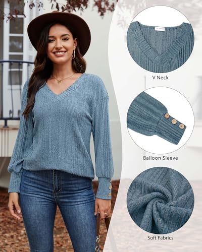 Bulotus Fall Sweaters for Women 2025 Tunic Sweater Long Sleeve Tops V Neck Lightweight Thin Pullover Work Casual Blouses 2