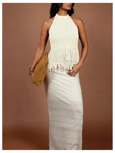 HOT ! Floerns Women's Summer Fringe Trim Sweater Vest Sleeveless Knitted Going Out Halter Tops