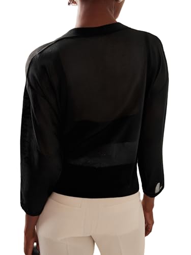 • Womens casual sweaters feature in v neck, 3/4 sleeve, bow tie side, see through, stretchy ribbed hem, loose fit style, drop shoulder, solid color, lightweight knit sweater pullovers.