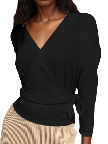 Women's Lightweight Wrap Sweater Pullovers V Neck Tops Tie Side Loose Fit Going Out Blouse 4