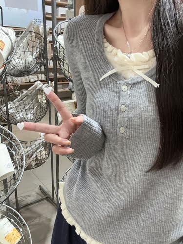 More information about Women Coquette Long Sleeve Shirts Cute Lace Ruffle Bow Tie Cropped Sweater Y2K Fairy Grunge Vintage Y2K Top Baby Tees