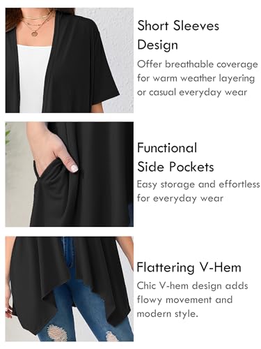 AusLook Women's Plus Size Lightweight Open Front Short Sleeve Cardigan Cover Ups Shrugs Shawls and Wraps Kimono Jacket Coat 5