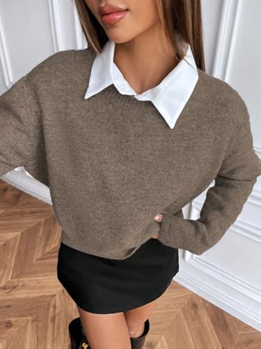 More information about WDIRARA Women's Crew Neck Long Sleeve Sweater Pullover Knit Top Solid Color Casual Knitwear