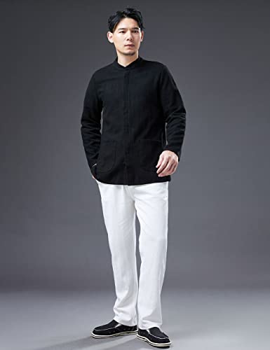 LUZU JUNU Men Chinese Traditional Linen Cotton Tang Suit Top Kung Fu Jacket Spring Fall Thick Bomber Jacket Coat 5