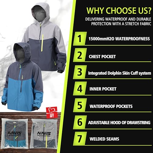 • Fly Fishing Wading Jacket: Navis Marine unisex rain jacket for fishing, ultralight at 15.8oz with 3L Gore PRO-Tex for superior waterproofing