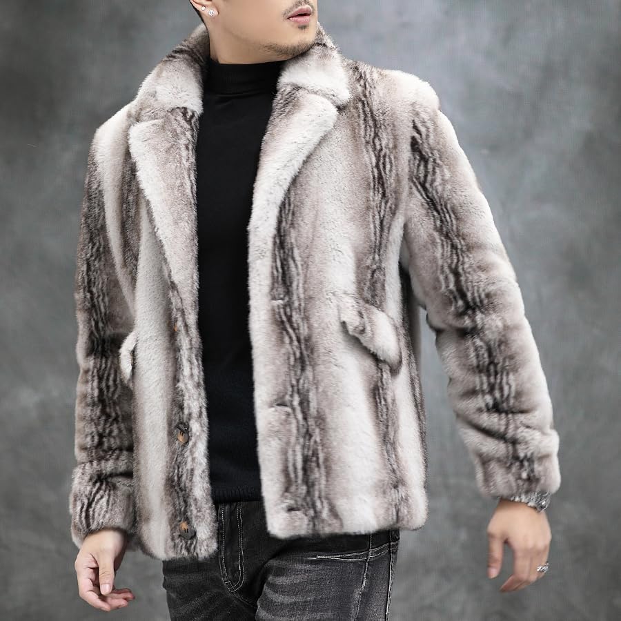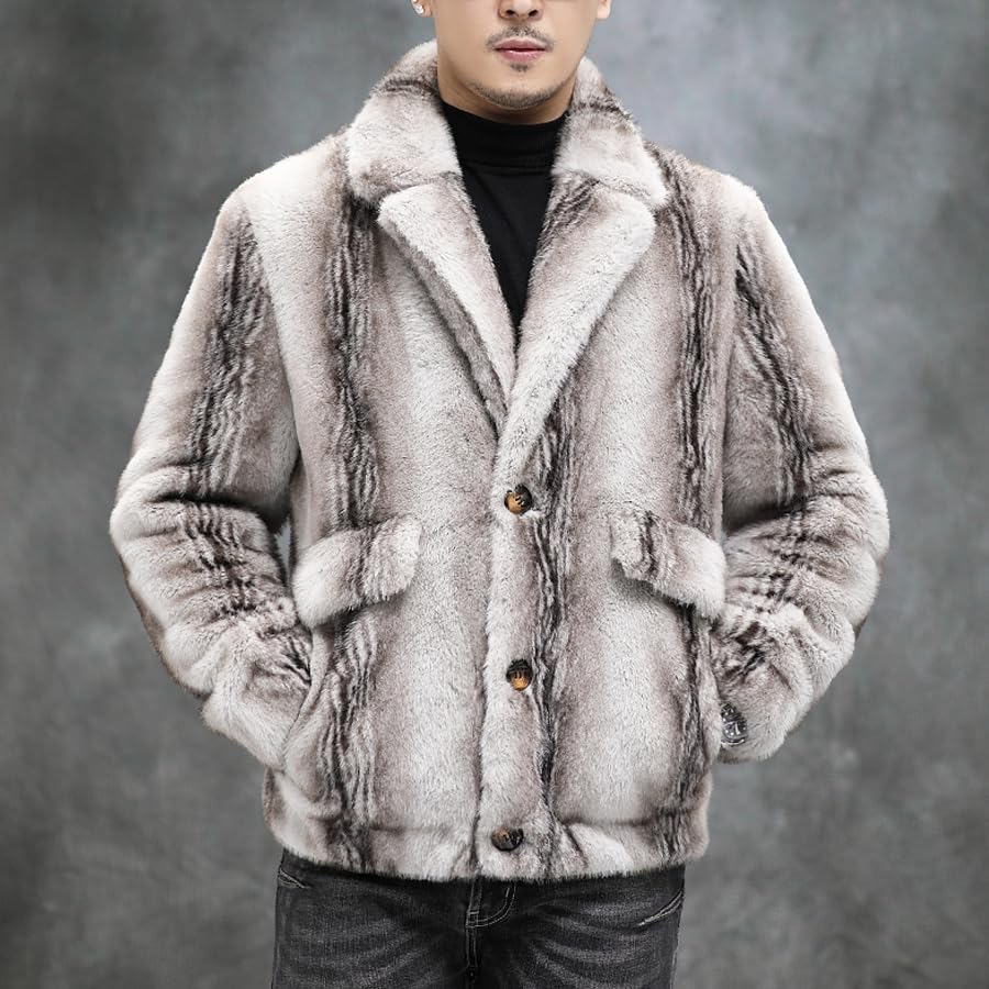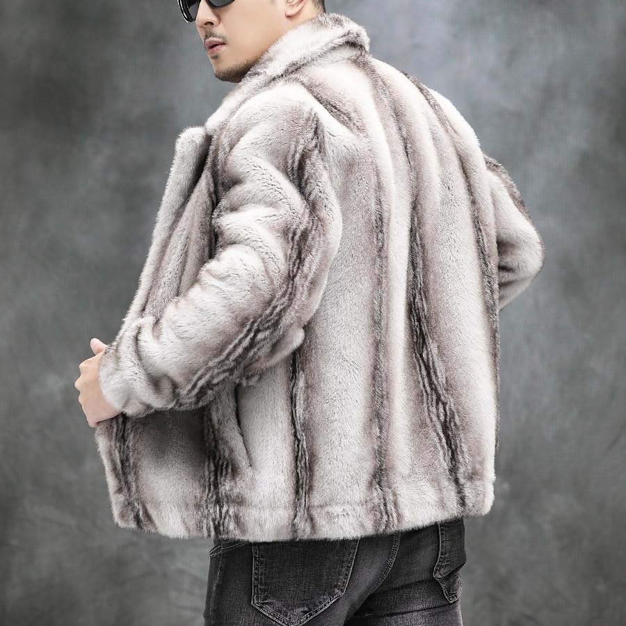 Men's Winter Faux Mink Coat, Open Front, Single Breasted, Notched Lapel, Reversible Design 7