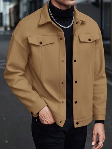 Men's Lapel Woolen Blend Business Jacket Fashion Leisure Sports Coat Trendy Casual Button Up Long Sleeve Jackets 4