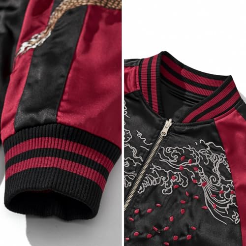 Reversible Streetwear Men Japanese Style Dragon Embroidery Bomber Jacket Stain Full-Zip Vintage Windbreaker 3