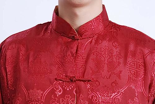 Men's Tang Jacket with Contrast Lining Chinese Traditional Frog Button Jacket Long Sleeve Stand Collar Tangzhuang Coat 5