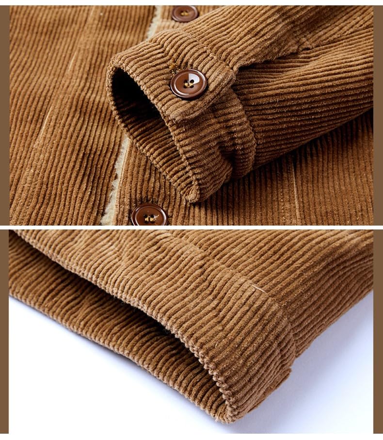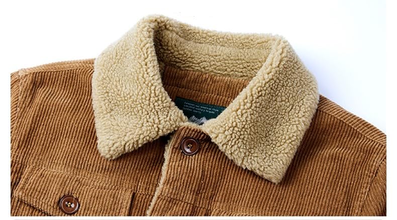 More information about Mens Corduroy Sherpa Lined Trucker Jacket Thickened Warm Winter Coats Lapel Collar