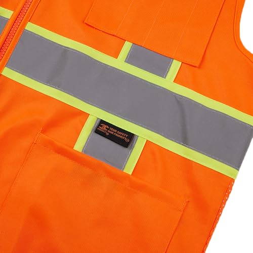 HOT ! SV2400, ANSI/ISEA Class 2, Safety Tricot/Mesh Vest, Reflective w/Yellow binding, Zipper, Pockets, Neon Orange