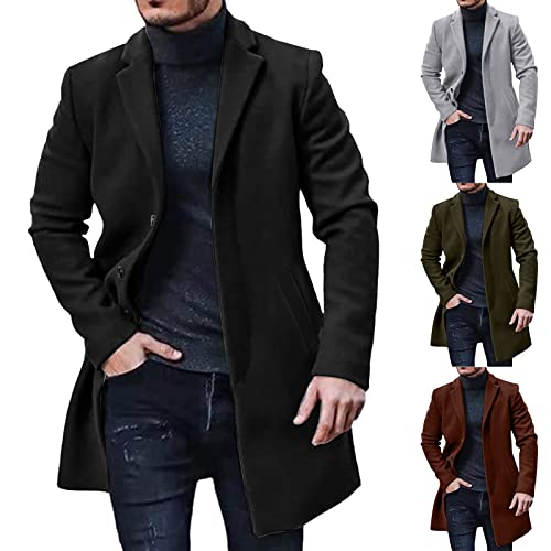 More information about Mens Wool Blend Pea Coat Notched Collar Single Breasted Solid Overcoat Thermal Winter Stylish Trench Coat