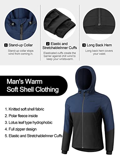 KUTOOK Men's Hooded Softshell Cycling Jacket Thermal Fleece Windbreaker Windproof Warm Jacket Outdoor Hiking 6