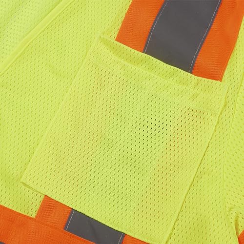 SV5300, ANSI/ISEA Class 3, High Vis Mesh Safety Vest, 3M Reflective w/Orange binding, 7 Pockets, Neon Green 5