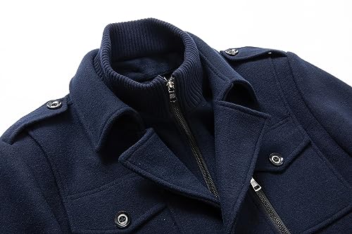 PRIJOUHE Men's Wool Blend Jacket Single Breasted Slim Fit Thick Winter Windproof Pea Coat with Removable Scarf 7