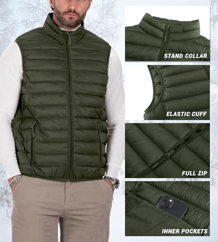 HOT ! Polu Men's Puffer Vest Lightweight Sleeveless Jacket Full Zipper Outerwear Vest Outdoor Puffer Vest with Pockets