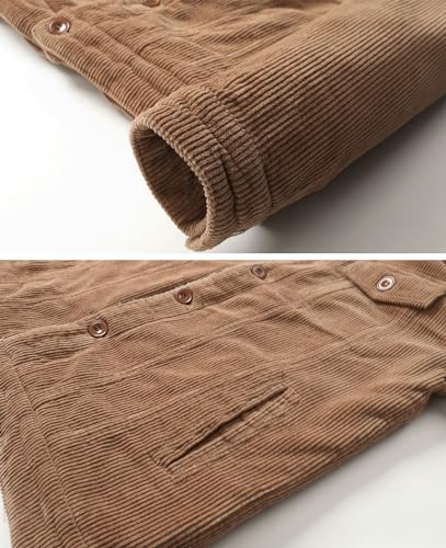 HOW'ON Men's Corduroy Jacket Sherpa Lined Warm Jackets Fur Collar Casual Coats 7