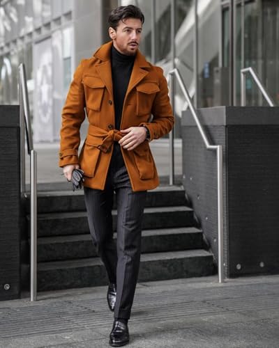 • UNIQUE DESIGN- Men's modern fashionable trenchcoat with special style, four flap pockets at front are convenient for daily storage while shows your personality. It features notched lapel, single breasted and slim fit. The classy overcoat is a must have in your closet, best for business, date and casual wear.