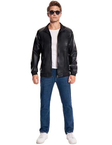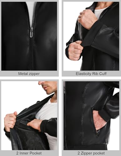 Mens Faux Leather Jacket Full-Zip Stand Collar Outerwear Lightweight Motorcycle Jacket 4