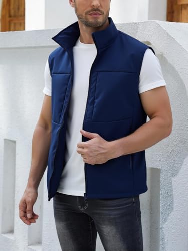 • Stylish Design: Mens summer vest with pockets features a full-zip front, sleeveless cut, stand-up collar, and four zippered pockets for secure storage of essentials like keys or phones. Perfect for quick access on the go, reducing clutter during adventures
