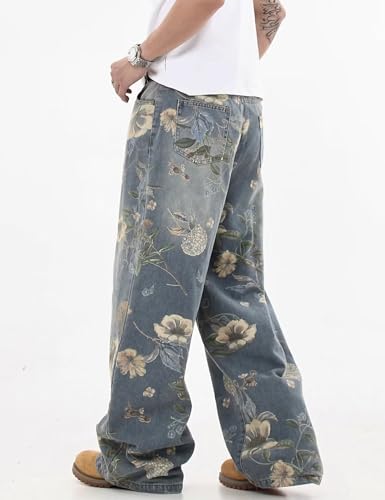 More information about Y2k Baggy Jeans Men Flower Print Graphic Jeans Harajuku Wide Leg Boyfriend Denim Pants Streetwear