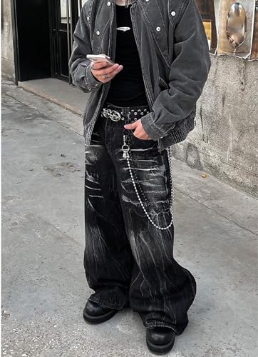 More information about jupkem Men's Loose Work Pants Y2k Jeans Gothic Wide Leg Fashionable Jeans Hip hop Garbage Pants Harajuku Streetwear