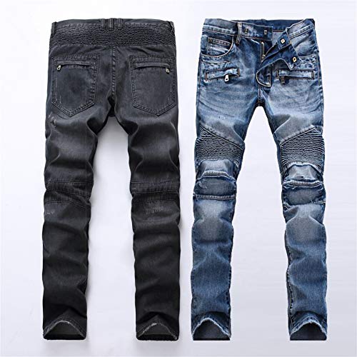 HOT ! Andongnywell Men's Distressed Slim Fit Biker Jeans Ripped Stretched Denim Pants Destroyed Skinny Fit Zipper Trousers