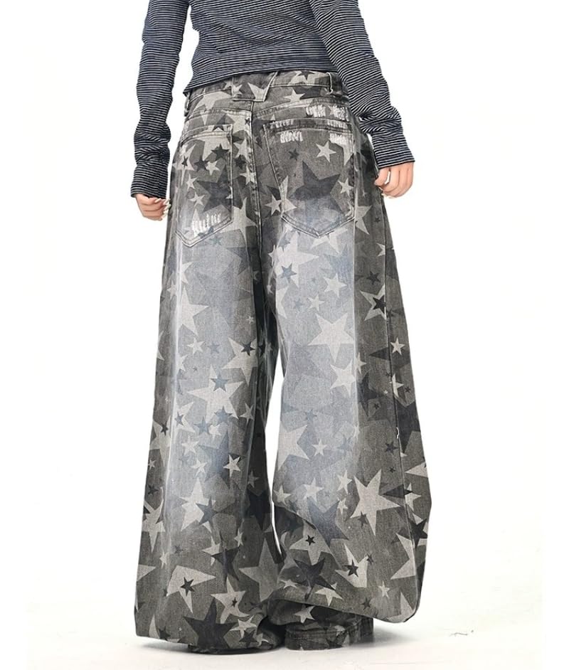 More information about Unisex Y2k Vintage Grunge Distressed Star Camo Print Wide Leg Jeans Hiphop Harajuku 90s Loose Fit Casual Denim Pants