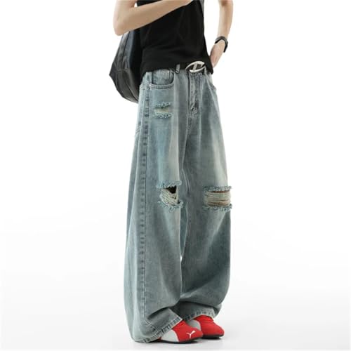 HOT ! Men's Denim Ripped Pants, Summer Baggy, Solid Color Straight Loose Fit Jeans, Stylish Trousers
