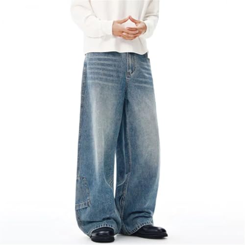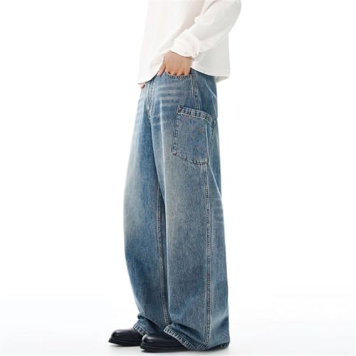 More information about Men's Simple New Denim Pants, Solid Color Washed, Reverse Pocket Casual Straight Leg Loose Jeans