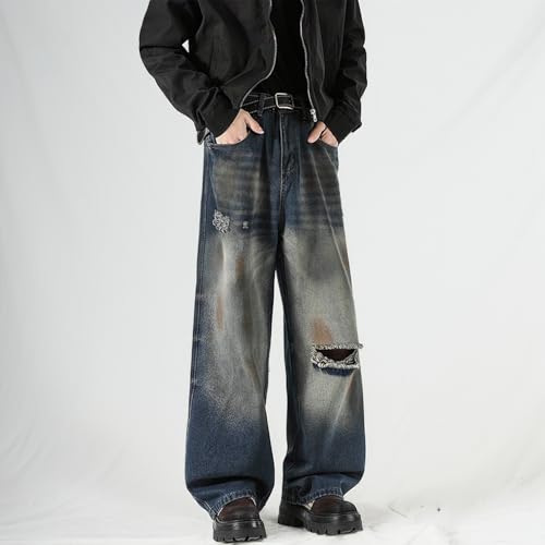 More information about Baggy Jeans Men Distressed Washed Wide Leg Jeans Men Loose Fit Ripped Open Bottom Streetwear for Skater Jean