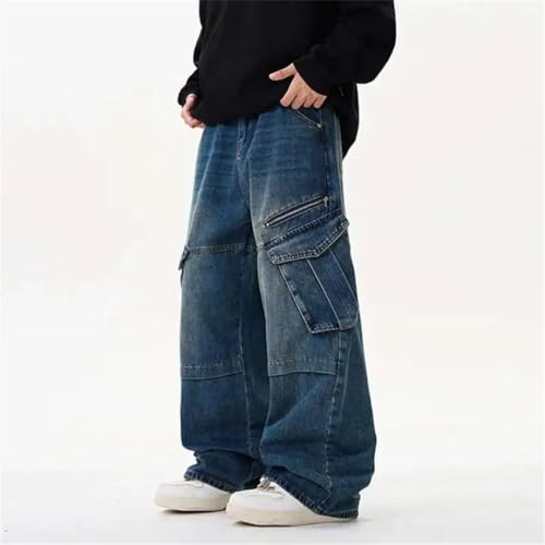 HOT ! Men's Jeans American Streetwear Large Pocket Workwear Denim Pants Loose Hiphop Wide Leg Trousers