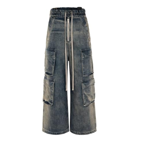 HOT ! Men Street Wornout Workwear Multiple Pockets Jeans Casual Straight Leg Floor Pants Trousers Loose