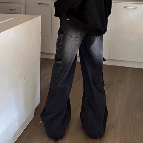 HOT ! Mens Baggy Cargo Jeans Y2k Wide Leg Grunge Denim Pants Vintage Hip Hop Jnco Streetwear Jeans with Pockets
