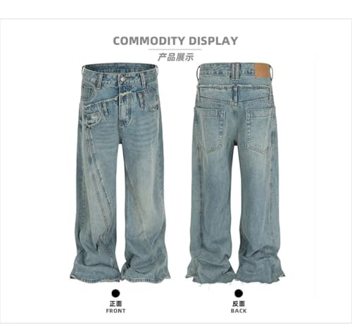 More information about Men's Women's Spliced Chic Vintage Denim Pants Irregular Design Niche Straight Jeans