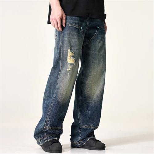 More information about Men's Classic High Street Jeans Distressed Fashion Retro Loose Straight Pants