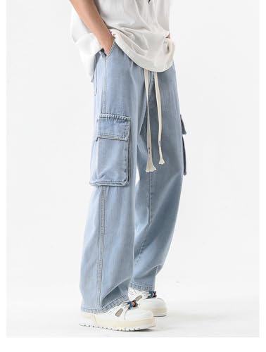 More information about Men's Denim Pants Drawstring Waist Jeans Multi-Pocket Trousers