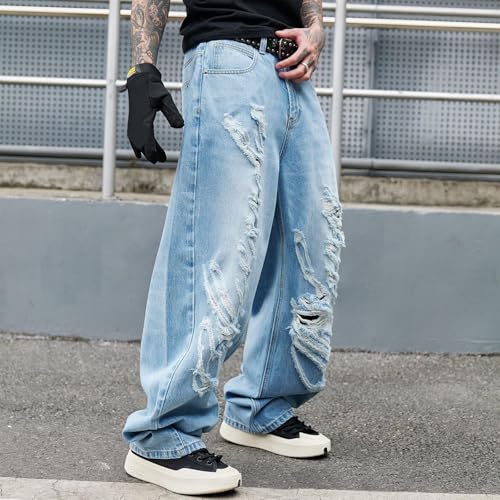 More information about Men's Jeans Pants 2025 Fashion Y2k Ripped Washed Solid Color Loose Comfy Denim Trouser Cargo Sweatpant with Pocket