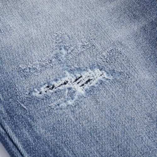 • Features: Classic slim fit jeans, timeless style, mid waist, zipper and button close, monkey washed with holes ,whiskers, suitable to wear all day long, comfortable and fashionable.