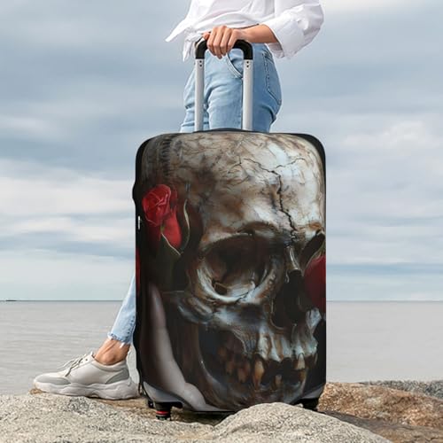 HOT ! Realistic Rose Skull For Travel Luggage Cover Suitcase Protector Fits 18-32 Inch Travel Luggage Protector Elastic Luggage Anti-Scratch Suitcase Cover