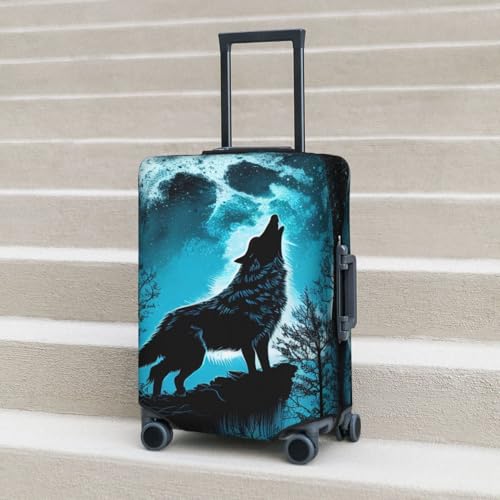 HOT ! Blue Full Moon Wolf For Travel Luggage Cover Suitcase Protector Fits 18-32 Inch Travel Luggage Protector Elastic Luggage Anti-Scratch Suitcase Cover