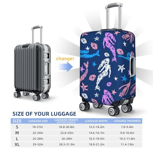 Elastic Travel Luggage Cover Printed Mermaids Starfish Seashells Double-Sided Suitcase Protector Bag,Dust-Proof Anti-Scratch Washable Suitcase Sleeve For Kid Adult,Medium 7