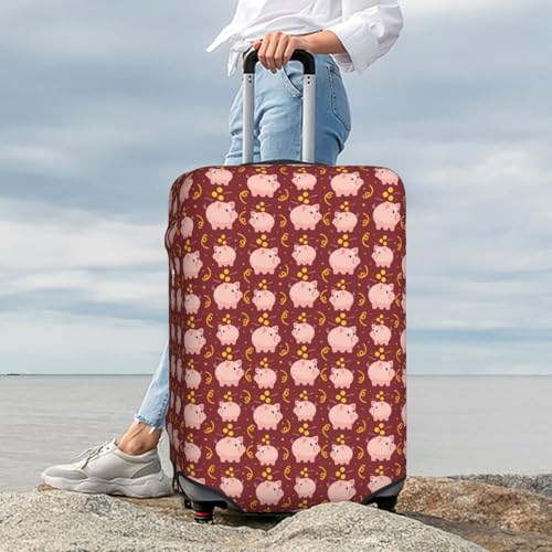 Cute Pig With Coins For Travel Luggage Cover Suitcase Protector Fits 18-32 Inch Travel Luggage Protector Elastic Luggage Anti-Scratch Suitcase Cover 7
