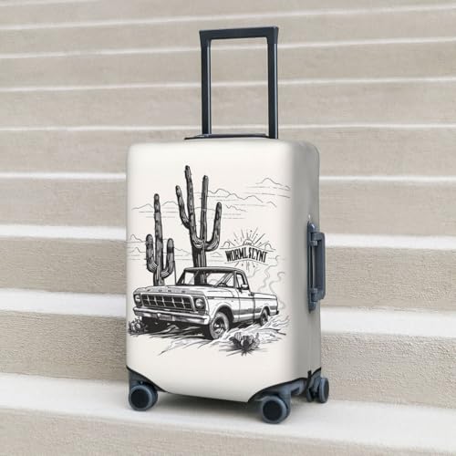 Vintage Cactus Pickup Travel Luggage Covers - Elasticity Suitcase Covers Protector for Luggage 18-32 Inch 7
