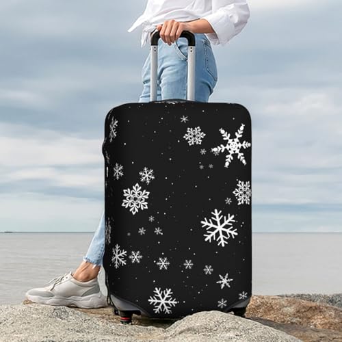 HOT ! Snowflake Winter Pattern Black And White Luggage Cover, Protective Washable Suitcase Cover - Travel High Elastic Fibers Suitcase Protector Fits Medium