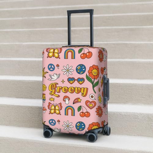 VOSERY Travel Luggage Cover - Retro 70s Hippie Washable Suitcase Covers Protector Fits 18-32 Inch Luggage 7
