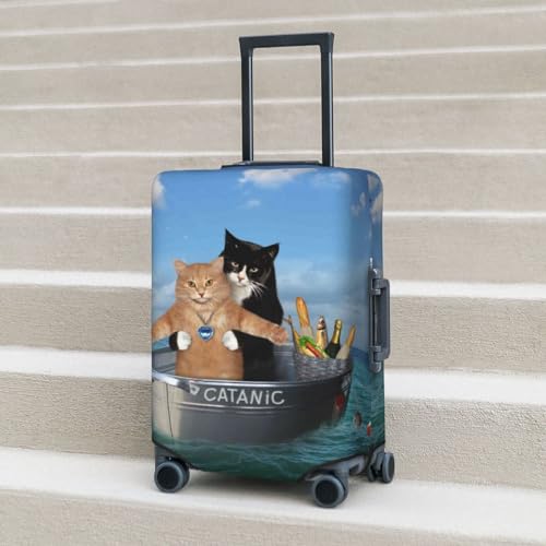 Travel Luggage Cover Protector - Two Brave Cats Are Floating On The Sea Iceberg Washable Suitcase Covers For 18-32 Inch Luggage 7